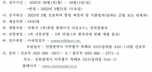 [현대유비스병원] 2023년 신규간호사 채용 공고