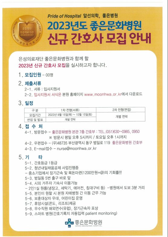 [좋은문화병원] 2023년도 신규간호사 모집안내